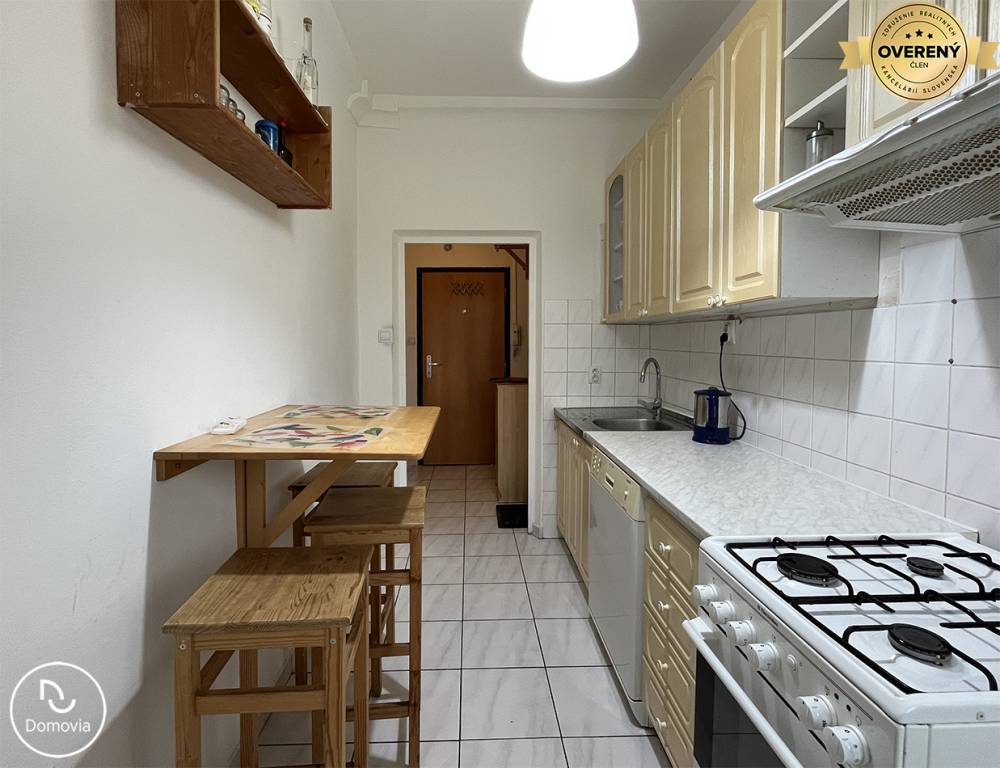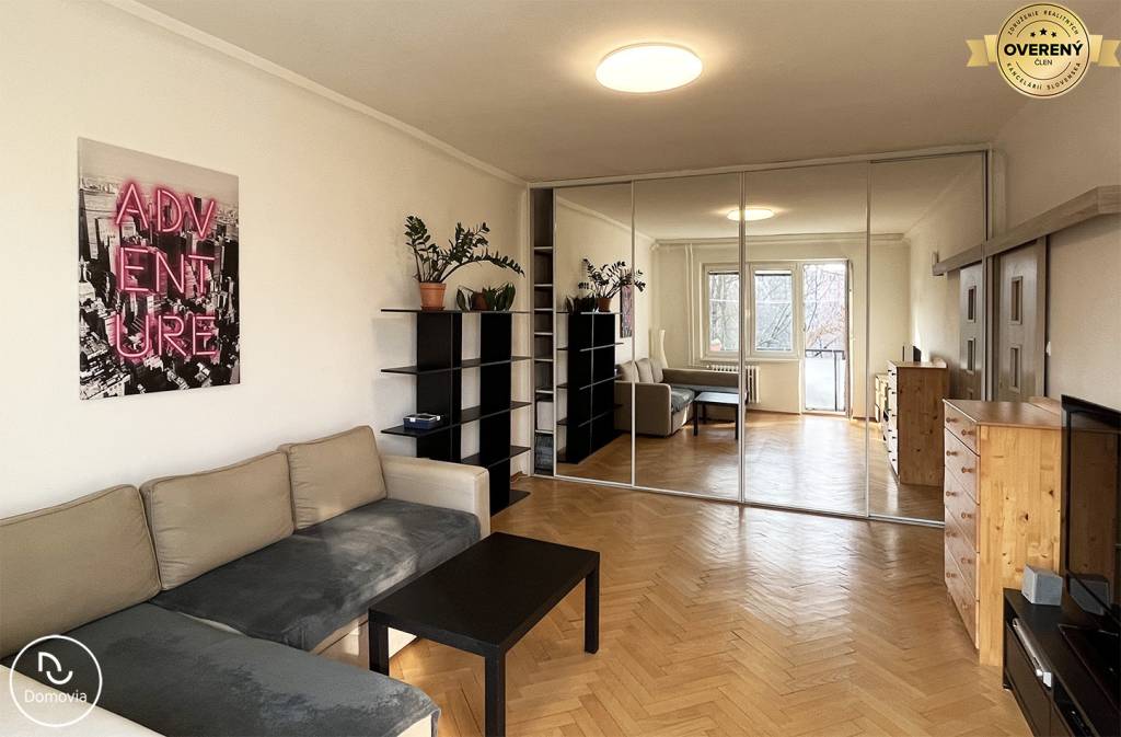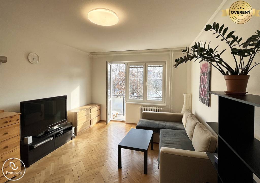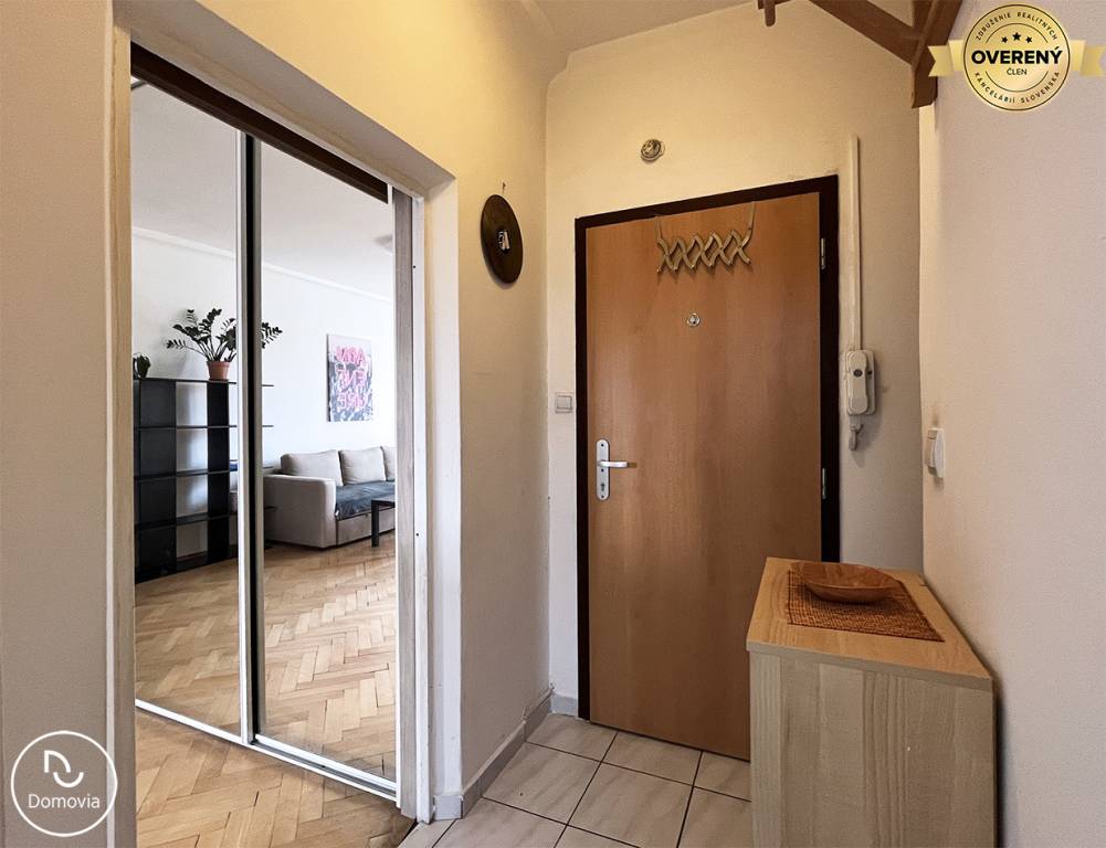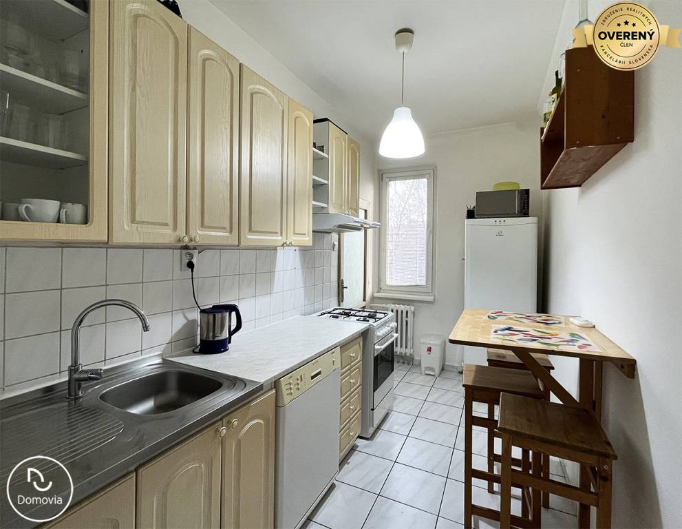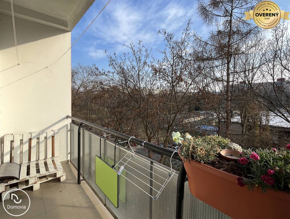 Realitná kancelária Domovia ponúka exkluzívne na prenájom zrekonštruovaný 2-izbový byt s loggiou na Zimnej ulici v Ružinove. Dispozícia: vstupná chodba, kúpeľňa so sprchovacím kútom a práčkou, samostatná toaleta, zariadená kuchyňa, obývacia izba s veľkým rolldorom a vstupom na balkón, samostatná menšia spálňa.