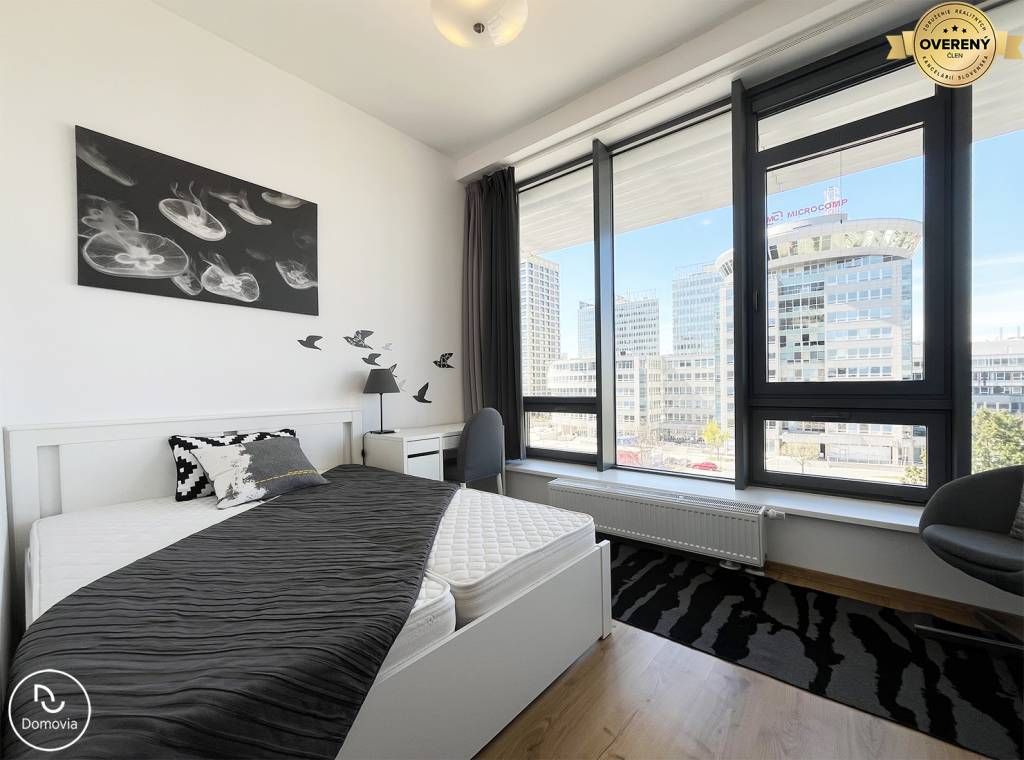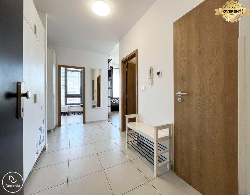 Realitná kancelária Domovia ponúka exkluzívne na prenájom krásny 2-izbový byt s garážovým parkovacím státím v novostavbe City Park na Plynárenskej ulici v Ružinove.
